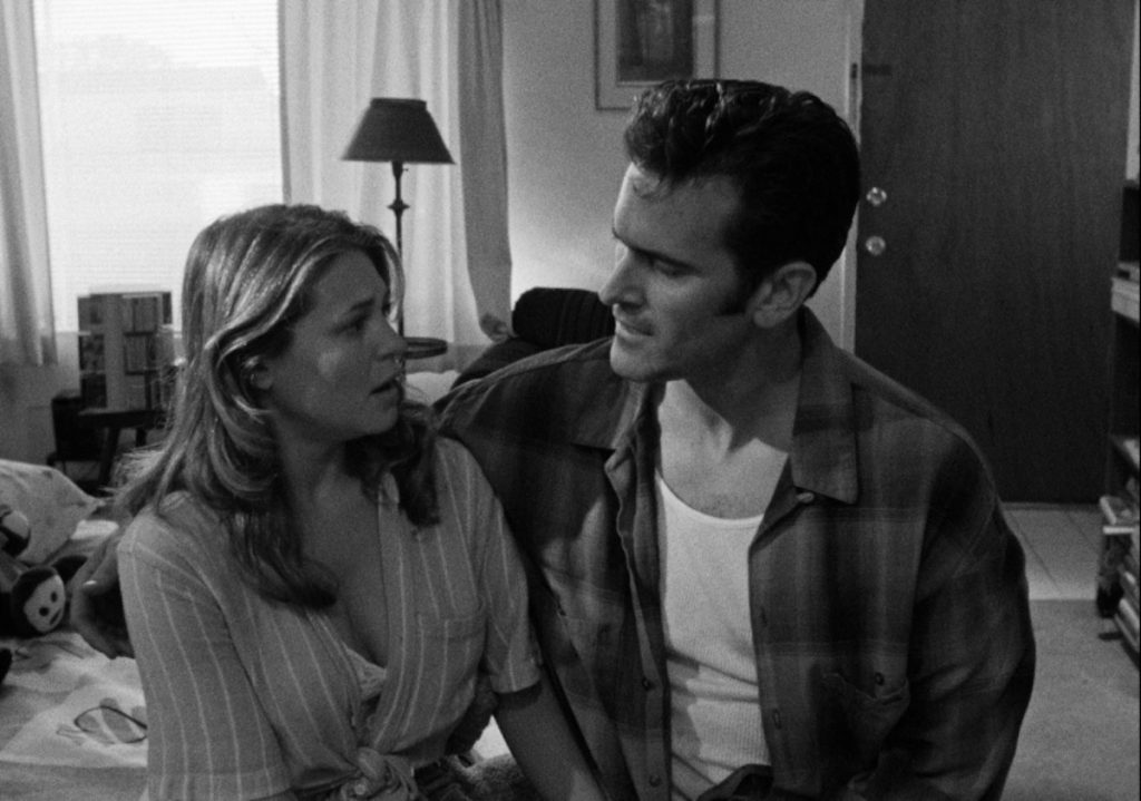 At the center of it all, though, is Campbell, who appears in nearly every shot in the film, ably carrying it for the 63 minutes that elapse between the Saul Bass-inspired opening titles and the closing credits. It’s an impressive achievement that should surprise and delight anybody who seeks it out. This is, after all, the Campbell who just a few years later took on the challenge of playing Elvis Presley in a nursing home going mano a mano with the Grim Reaper on two fronts. As no one who has seen Bubba Ho-Tep is likely to forget, the King was battling cancer even before a soul-sucking mummy showed up in his life. Now it’s Bruce’s turn.
