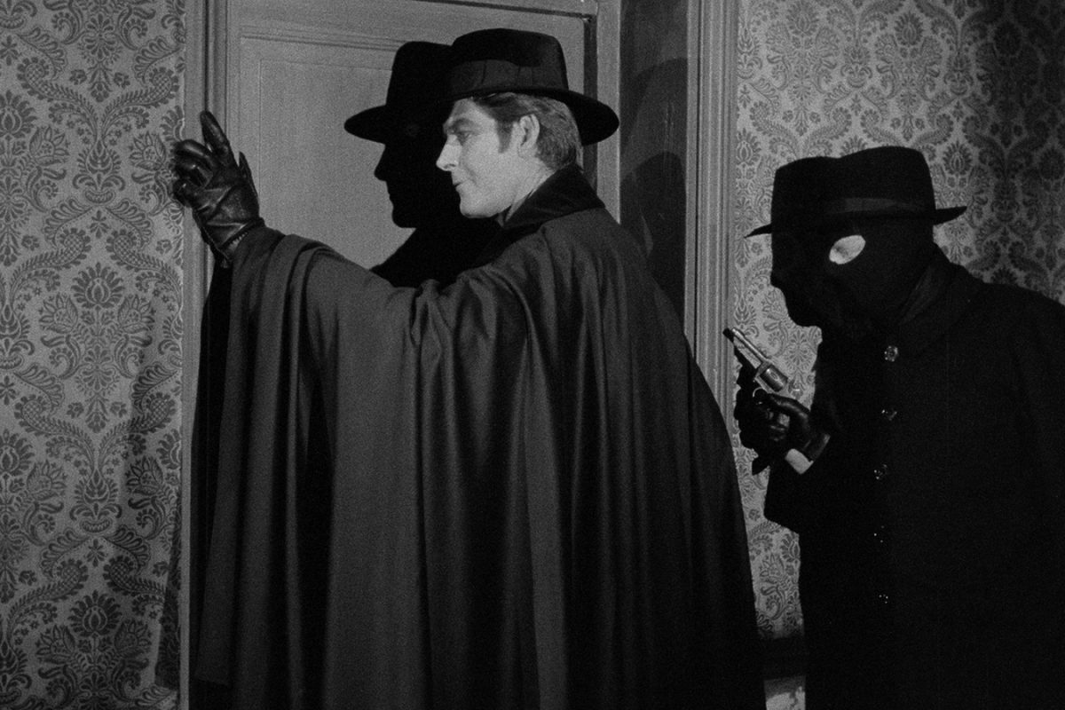 Accompanied by Maurice Jarre’s ominous score, which drowns out the music the masked guests are dancing to, the mystery man glides through the crowd, attracting the attention of some of those he passes, until he reaches a raised platform. There, he dazzles his audience by bringing the bird in his hand back to life and releasing it, then does the same for several more he conjures out of nowhere. It’s a magical moment that sets the tone for what will follow. Georges Franju waited thirteen and a half minutes to introduce the title character of his 1963 film Judex. If he wanted that introduction to be memorable, he succeeded.