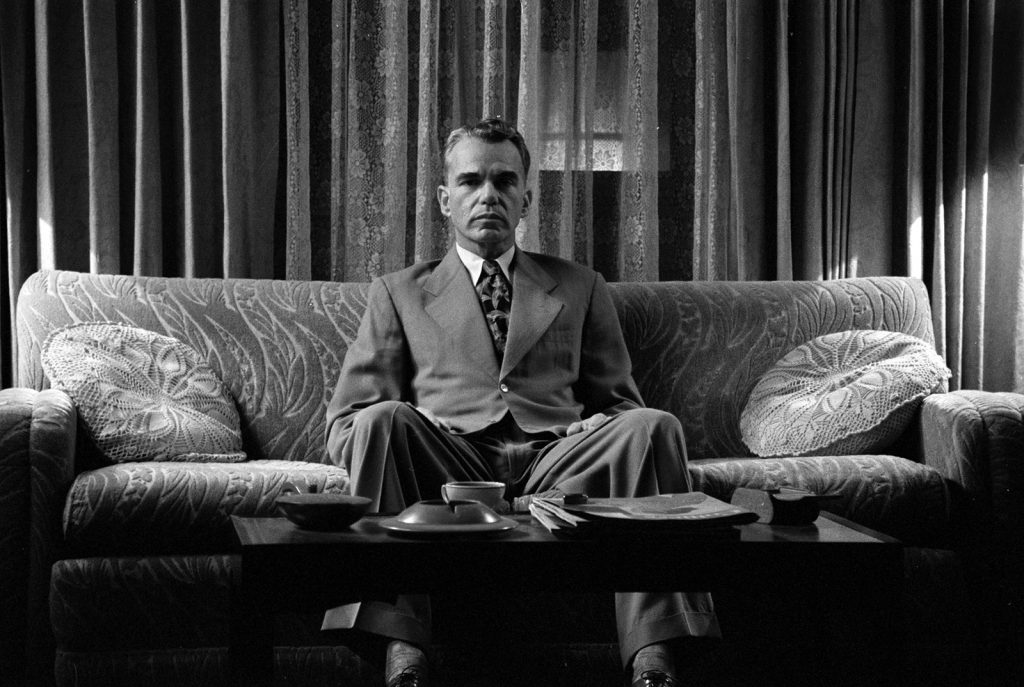 He plays Ed Crane, a barber in suburban California circa 1949. He’s a taciturn man, adorned with little more than a cigarette and a squint; as his noir-flecked voiceover says for him, “I don’t talk much. I just cut the hair.” Ed is married to Doris (Frances McDormand) and works for his brother-in-law Frank (Michael Badalucco). He suspects his wife might be having an affair with her boss, department store owner Big Dave Brewster (James Gandolfini). He’s marked by his ordinariness, not the sort who would seem likely to get involved in a criminal enterprise. The script makes a running joke out of how poorly people remember him. But that’s precisely why he proves a fitting mark for conman Creighton Tolliver (Jon Polito) who claims he needs $10,000 to start his new business venture. It’s called “dry cleaning.”
