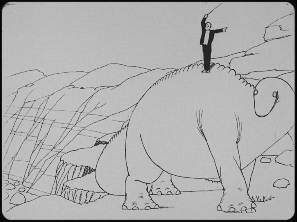 As documented in animation historian John Canemaker’s biography of McCay, the animator himself seemed to perceive Gertie in terms of what technical accomplishments he could achieve, as he tried to expand the detail of backgrounds in the short as well as making sure that Gertie herself seemed like a genuine dinosaur. This meant McCay would attempt to mimic breathing motions so he could animate them, and ensure that any time Gertie stamped with her huge body on the ground, the rocks underneath would sag appropriately onscreen. Unlike animation created even during the era of Snow White, the work that McCay put into Gertie was entirely self-driven, as he had to draw thousands of frames to comprise the eventual short film, utilizing a technique dubbed the “McCay Split System” wherein characters’ major positions were drawn first and then the in-between styles placed afterwards. Canemaker’s biography captured McCay’s personality in regards to this exhaustive and tedious work (if not animation as a whole) later on; after the film’s release, McCay chose not to be overprotective of his methods, reportedly saying, “Any idiot that wants to make a couple of thousand drawings for a hundred feet of film is welcome to join the club.”