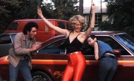Lulu routinely makes dates with respectable boys just so she can sneak away with leather-clad lowlife Bo-Bo Belsinger (Stiv Bators). As Waters has revealed on the Polyester commentary track, this is a strategy Mary Vivian Pearce actually employed in real life to see him! Francine tries to keep Lulu away from temptation by banishing her to her room. Yet this Rapunzel comes prepared; she has a rope ladder by her bedroom window.