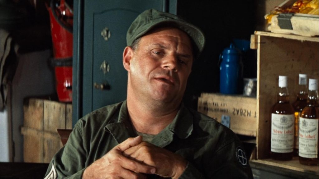 As Quartermaster 1st Class Ruby, Rickles acts as a visual barometer of the crew’s morale. When they think Jim will captain the sub, Ruby stands in the center of the screen, a wide smile and squinted eyes looking up at Jim with adulation. He lovingly banters with Jim, conveying the excitement of the crew. Later, when Rich offers the first of many risky orders, Ruby wears their shared concern. The film features a handful of such moments when Rickles as Ruby manifests the spirit of the submarine and projects it across the screen. It’s a minor yet crucial role.