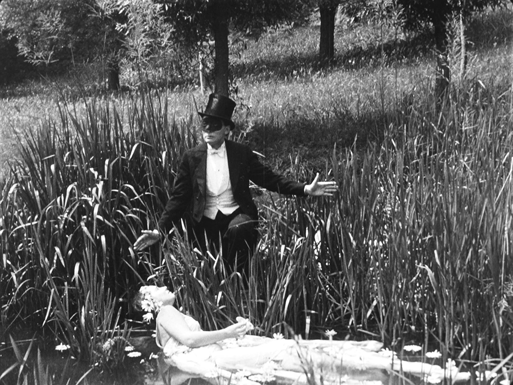 In the Shadow of the Guillotine. The Murderous Corpse. The False Magistrate. The titles are as macabre as the masked madman that appears in them. From the publication of his first adventure in February 1911, the character of Fantômas seemed tailor-made for the movies. A master of disguise and evil genius capable of pulling off all manner of diabolical deeds, Fantômas was the creation of French writers Pierre Souvestre and Marcel Allain. Working by alternating chapters, they turned out Fantômas books at the rate of one a month, meaning 27 were on the stands by the time Louis Feuillade’s adaptation of the first was released in May 1913. Souvestre and Allain kept up the pace until that September and the publication of the 32nd volume, La fin de Fantômas (“The End of Fantômas”), with Allain reviving the character in serialized form twelve years later – thanks in part to the continued popularity of the five Fantômas films Feuillade made in 1913-14.