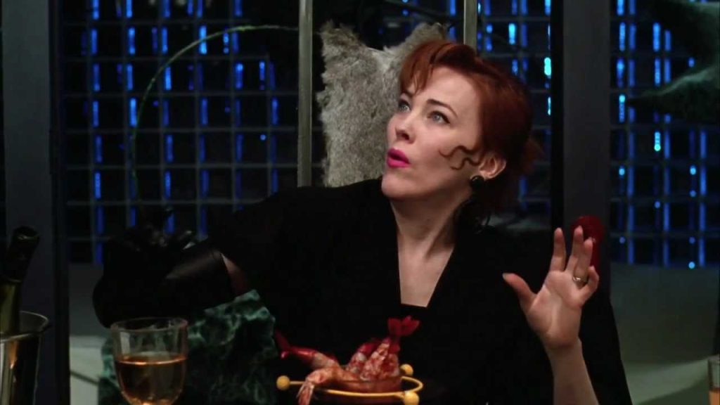 In her very first scene, as the Deetz family begins moving into the Maitland house, Delia gives a bitter proclamation (“A little gasoline. Blowtorch. No problem”) as she observes her modest-looking household. Unlike her husband Charles (Jeffrey Jones) and stepdaughter Lydia (Winona Ryder), who are more at peace with their predicament, it’s evident through that affirmation and her scorned lip curl that Delia is flustered with being thrust away from her beloved city life and into the countryside. It’s more clear who runs the marriage once she and Charles have a slight squabble.