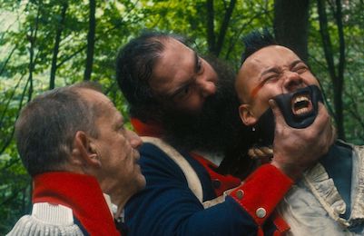 In terms of originality and scope, there were few, if any, films at the festival that could hold a candle to Mohawk. Directed by Ted Geoghegan (We Are Still Here), the movie is set late in the War of 1812 and focuses on two disparate groups hunting each other deep within the woods of upstate New York. The first group, and the film’s ostensible heroes, are Native American couple Oak and Calvin (Kaniehtiio Horn and Justin Rain) and their mutual lover, Joshua (Eamon Farren, recently seen in Twin Peaks: The Return), a British spy tasked with recruiting the neutral Mohawk tribe to fight for his king against the Americans. After failing in their diplomatic mission, Calvin takes matters into his own hands, slaughtering dozens of soldiers at a cavalry outpost and setting off a manhunt for the trio.