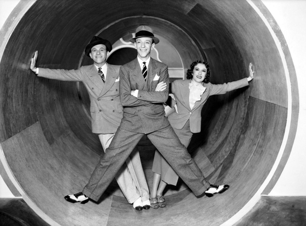But the first great number made its way into the movie by accident. In his wonderful memoir Gracie: A Love Story, Burns recalls that he and his partner and wife Allen badly wanted to do the movie, but there was a tough condition: “Before RKO signed us for the movie they wanted us to dance for Fred Astaire and get his approval. That made me a little nervous.” Understandable! But Burns had an idea: “I remembered a vaudeville team named Evans and Evans who used to do a popular act in which they danced with whisk brooms. I didn’t know how good I’d look trying to keep pace with Fred Astaire, but I knew I’d be great compared to a whisk broom. So I invited one of the Evanses to come to California to teach the whisk broom dance to me and Gracie.”