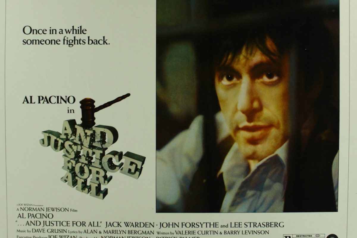 The key to appreciating director Norman Jewison’s oddball 1979 legal drama …And Justice For All is understanding that all of the characters are insane. Most of them didn’t start out that way. Once upon a time, some of these folks were idealistic overachievers who earned degrees and opened profitable firms, before being driven out of their minds by a criminal justice system designed to reduce complicated human tragedies into easily quantifiable abstractions. We’re often told that this is a nation of laws, not people. And it’s that humanity that gets lost in the labyrinthine technicalities and bureaucratic red tape bedeviling defense attorney Arthur Kirkland, a sloppy, chivalrous sort played by Al Pacino as a noisily fraying nerve. “Don’t you care about people?” he cries out constantly to his colleagues, in a voice we hear shredding itself to ribbons as the story wears on. Pacino doesn’t smoke in the movie, but he still sounds like a carton of cigarettes and looks like an ashtray.