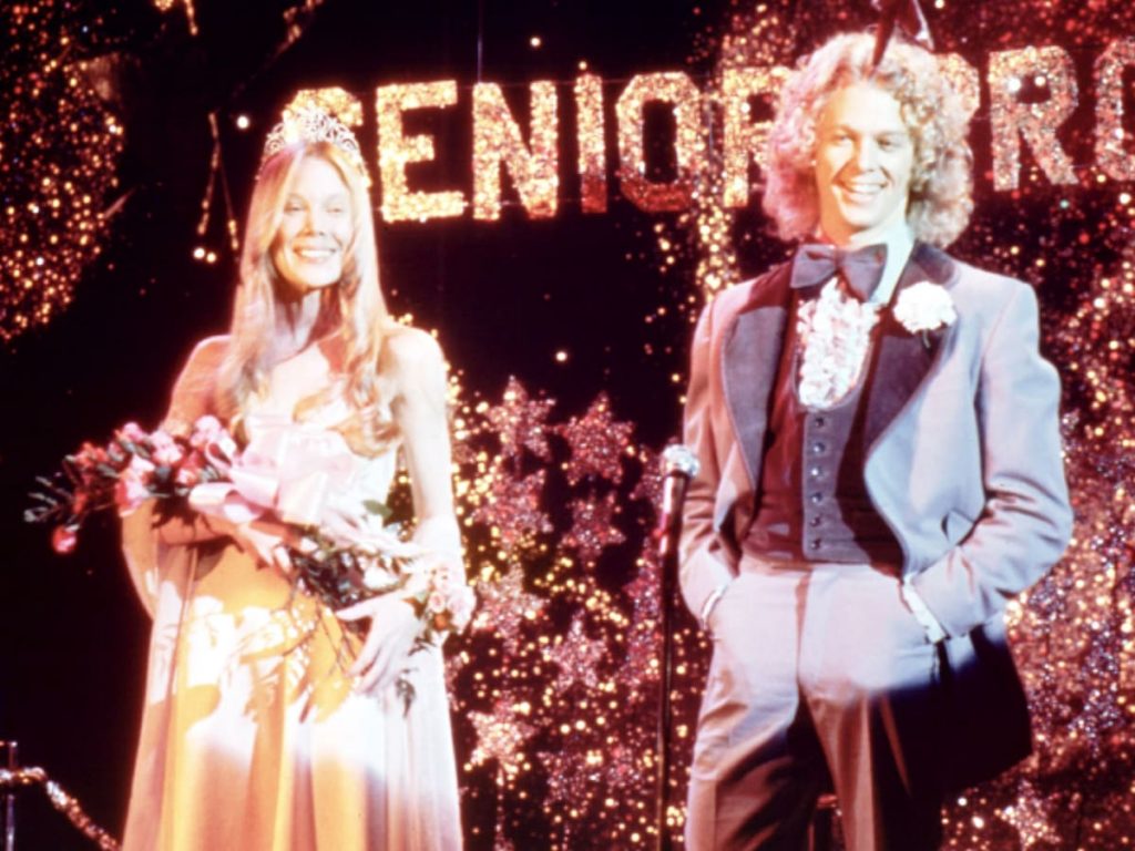 I never got mad about my cousin spelling out the entire movie for me from start to finish because the delight of Carrie is in the anticipation. It’s one of those films that even if you’ve never seen it you probably already know what happens thanks to cultural osmosis. (Heck, even the movie’s original poster was a giant, honking spoiler.) We start watching the movie already anxious about the prom sequence — such a prolonged derangement of expectation and release it feels almost pornographic. (Even the film itself feels in a hurry to get on with it, literally fast-forwarding through the dialogue when Katt’s Tommy Ross and his buddies go tuxedo shopping.)