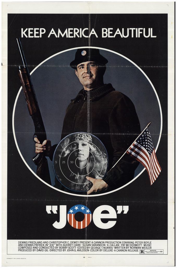 On May 8, 1970, the AFL-CIO mobilized some two hundred New York City construction workers and sicc’ed them on about a thousand high school and college-aged protestors who were calling out the government’s actions abroad (the invasion of Cambodia) and at home (the Kent State Massacre occurred days prior). The Hard Hat Riot, as it’s now known, resulted in overwhelmingly white, conservative, blue-collar union men executing a planned attack on the protestors and injuring over 70 people in less than two hours all over lower Manhattan. A contemporary NY Times article describes counter-protestors as chanting “All the way, U.S.A.” and “Love it or leave it,” before the fists started flying. Police did little to protect the victims; only six people were arrested. Two months later, Joe opened at the Embassy Theater in Brooklyn, just thirteen miles from the protest site where “Bloody Friday” went down. Directed by John G. Avildsen, Joe is a subversive trickle-down indictment of the American white man across culture, class, and generation.