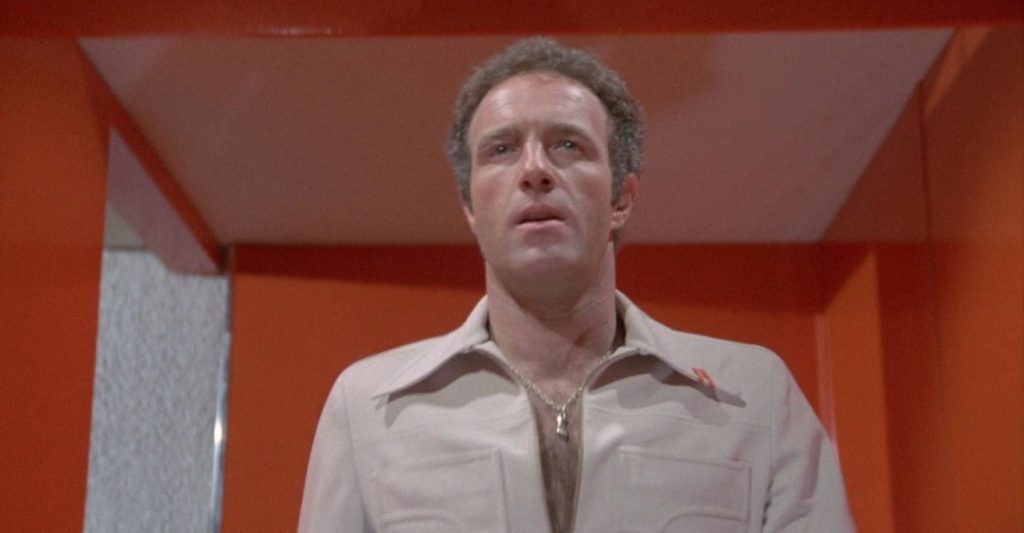 This is a world of compromise, in which individuality has been traded for comfort. Or, as Jonathan E. (James Caan) puts it, it’s a choice between “havin’ all them nice things and… freedom.” Jonathan is the star player of the Houston Rollerball team, and Caan is the right choice for the role, a square-jawed jock type who nevertheless sports a giant chip on his shoulder.