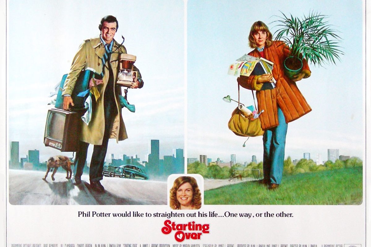 Burt Reynolds gives one of his least Burt Reynolds-y performances in Starting Over. It’s not just that he’s missing the mustache, it’s that he’s also got no swagger – none of the actor’s trademark, smirky joie de vivre. Starring as a depressed, newly divorced magazine writer named Phil Potter, the Bandit wears tweed jackets with suede patches on the elbows instead of a cowboy hat. He seems to move a couple of beats behind everyone else in the picture, accepting the increasingly absurd situations he keeps finding himself in with a forlorn smile. Even Burt’s toupee looks less robust than usual.