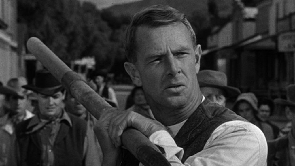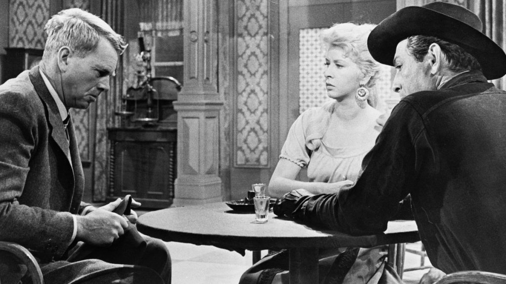 Hayden is often celebrated (deservedly) for his roles in two Kubrick films: Dr. Strangelove or The Killing, whichever intensity tickles your fancy. But in Texas Town, the actor adapts an aw-shucks newcomer naivete that transforms into an everyman salt by the time the end credits roll. With a paper-thin Swedish accent that comes and goes throughout the crisp 81-minute runtime, Hansen Jr.’s lines are delivered with the matter-of-fact confusion of a man who stands bewildered at the contradictions of of North American capitalist society, and all that is done to protect national wealth above all else. “How can I get in trouble claiming what is mine?” he wonders aloud. The answer, he finds, is maddening to anyone not in the old boys club.