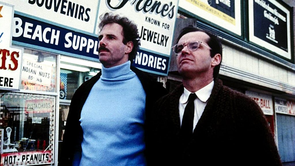 It begins in blackness. Without so much as a studio logo to let us know that the film is starting, Jack Nicholson slides sideways onto screen, his face filling the frame in tight close-up. Addressing the audience while also looking somewhere beyond us, he purrs, making a meal out of dramatic pauses: “I promised that I would tell you… why… I never eat fish.” We eventually put together that he’s a late-night FM radio host, monologuing into the microphone at three o’clock in the morning. His name is David Staebler and the program is called “Et Cetera.” The tale he tells is a harrowing one, about how David and his brother Jason watched their grandfather choke on a bony filet of sole and did nothing to help the mean old bastard as he died right in front of them.