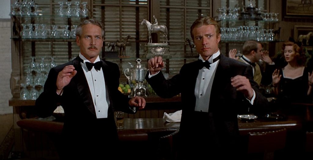 Honestly, I find all the plot stuff extraneous to the film’s breezy pleasures. The fun is in watching great faces giving each other sly nods, and Redford’s ability to play both gullible and knowing, often at the same time. Newman doesn’t appear until 26 minutes into the picture, at which point he seems to be launching the second and far more enjoyable phase of his career, relaxing into middle age as a rascally character actor. (“Sorry I’m late, I was taking a crap” is a great way to walk into a room.)