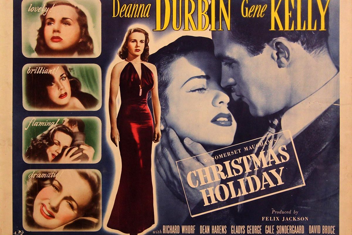 Movie titles can have a way of announcing just what they are, and each genre has its own set of verbal conventions for cueing the audience in to the tone and style of what they’re about to see. Film noir titles like Out of the Past, Night and the City, Born to Kill, Dark Passage, Kiss Me Deadly — these speak of crime, paranoia, secrets, and an urban midnight darkness. So what can we expect from a movie called Christmas Holiday (1944), starring classic song-and-dance talents Deanna Durbin and Gene Kelly? Surely this is a colorful, joyful musical about “the most wonderful time of the year.”