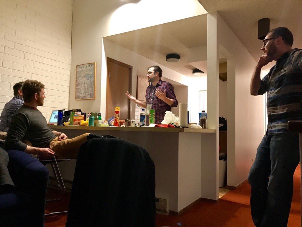 We trudged back to the condo afterward, arriving at the same time that super bros Jeff Bayer, Vince Mancini, and Dan Mecca returned loudly from the party they’d been to, at which drinks had evidently been served. It seems to have been quite a raucous party, considering it was for a movie about the Oklahoma City bombing. Bayer went to bed, while Dan and Vince told stories of his exploits. (Apparently he somehow got a new winter coat from someone? I need to follow up on this.) The movies, of course, are the important thing at Sundance, but without friends and friendly colleagues it can be miserable.