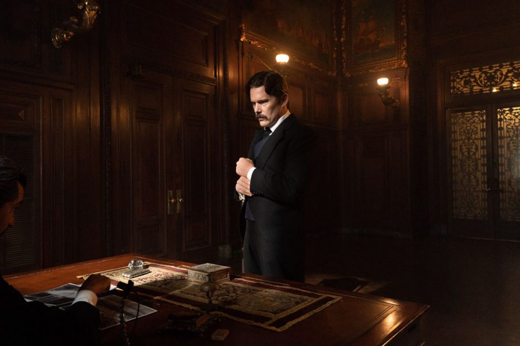 The party went past 3 a.m., so there was considerable sleeping in and hungoverness at our place today. I spent most of the day writing, then went to a 4 p.m. screening of Tesla, about the ’90s rock band. No, I am j/k, it’s about the inventor, played by Ethan Hawke against Kyle MacLachlan’s Thomas Edison. I was intrigued because the director, Michael Almereyda, has done interesting things with biopics before, including Experimenter (Sundance 2015), about Stanley Milgram.