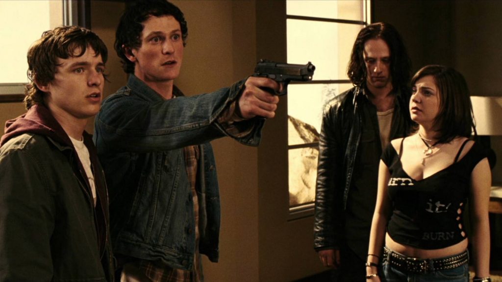 Crime goes way up one evening when a trio of young-punk hoodlums (Ben Foster, Jonathan Tucker and Marshall Allman) decide to slip into a mansion and steal a car from a wealthy, widowed accountant (Kevin Pollak) and his two kids (Jimmy Bennett, Michelle Horn). This soon turns into a hostage situation when one of the hoodlums starts shooting at cops responding to a security alarm. At first, Talley, still traumatized from losing that family, freely turns authority over to the county sheriff’s department. But he soon has to regain control when a group of hooded figures (led by veteran tough guy Kim Coates, whom Willis memorably killed in The Last Boy Scout) force him to go back and retrieve a DVD full of incriminating, encrypted files or they’ll kill his family.