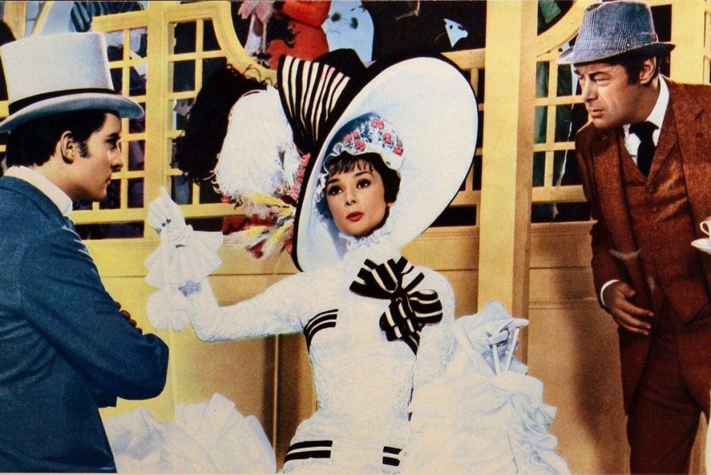 My Fair Lady began as a smash hit on both Broadway and the West End; Rex Harrison and Julie Andrews starred in both productions, cementing themselves in the minds of theater-goers as the memorable characters of Professor Henry Higgins and Eliza Doolittle. Harrison was soon brought on board the production (albeit reluctantly – the studio originally wanted Cary Grant, who refused the role, insisting that they use Harrison). But Andrews, who was largely a stage performer at the time and had only a few on-screen credits, was a much more unknown quantity. So it was disappointing, but perhaps not surprising, when they elected not to hire her to play Eliza Doolittle, instead choosing the waiflike Belgian-born actress Audrey Hepburn. After popular turns in Roman Holiday, Breakfast at Tiffany’s, and Charade, Hepburn may not have established her musical cred, but she was exactly what the producers wanted – a bona fide movie star. Her performance in My Fair Lady is, to be fair, delightful, even with Marni Nixon dubbing her vocals. But it still must have rankled for Julie Andrews to watch the role she made famous in the hands of another actress, especially one who wasn’t even singing.