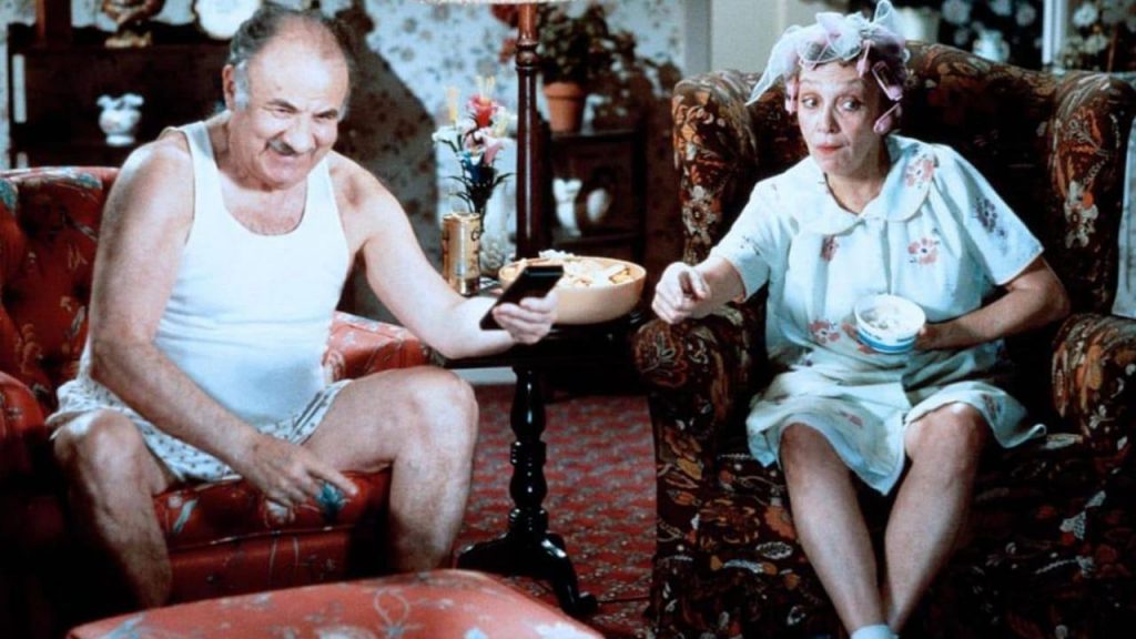 After that, Amazon is framed as though the viewer is flipping through channels, dipping into various movies, TV shows and commercials while also throwing in scenes of people getting practically taken out by newfangled, electronic equipment. A running gag has the late character actor Lou Jacobi as an underwear-clad man who gets zapped into his own TV, popping up on one channel after another and eventually wandering through the rest of the movie. One long-winded scene features Steve Guttenberg as a serial dater who gets busted for his selfish, womanizing ways when an intended date (Rosanna Arquette) asks for two forms of ID and prints out his dating history. And in the climactic closer, a single guy (Marc McClure, aka Jimmy Olsen from Superman: The Movie) gets persuaded by a video-store clerk (Russ Meyer!) to rent a video where he spends some quality time with a buxom female (1982 Penthouse Pet of the Year Corinne Alphen). Believe it or not, that really doesn’t end well.