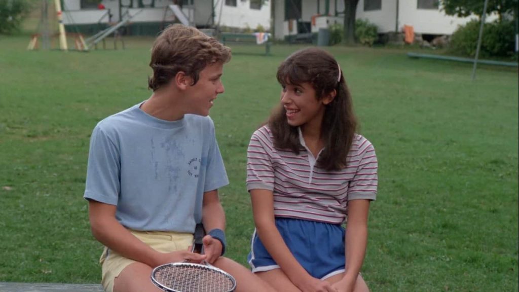In contrast to its Camp Crystal Lake counterpart, Sleepaway Camp features a cadre of strong characters among its slasher fodder. In the lead role, Felissa Rose carves out bits of humanity within Angela’s general muteness through subtle expression. On the Scream Factory commentary, Rose expounds: “When you’re a child, you’re apt to have a bigger imagination. I created a whole character for myself.” When camper Paul (Christopher Collet) approaches Angela at a camp social and begins to tell her stories about himself, Rose utilizes her physicality to say what her character can’t: her eyes widen, the corners of her mouth turn slightly (but noticeably) upward, her head tilts forward as a turtle emerges from its shell. As her relationship with Paul progresses throughout the runtime, she eventually speaks, and it’s no surprise that Paul is the recipient of her words—her comfort with him was apparent from their first meeting.