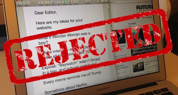 Crooked Marquee stands proudly as one of the top 100,000 U.S.-based movie websites on the Internet. As you can imagine, with credentials like those, we get thousands of story pitches from freelance writers. Many of their ideas are insightful and original, but some just aren’t what we’re looking for. Would you like some examples of the latter category? You would? Ugh, hang on. Let me see what I can dig up.
