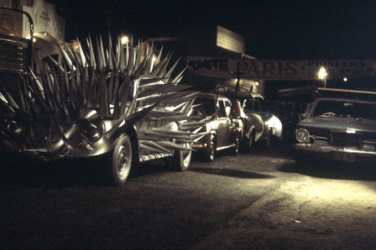 The premise of Cars – a small, isolated community that causes car wrecks, strips the vehicles for parts, and has any survivors lobotomized – is also prefigured by a scene in Homesdale. In it, the manager of the title establishment, which bills itself as “a new experiment in togetherness,” regales his guests with the story of a miner who faked road accidents. “Used his motorcycle to kill four wives,” he explains, and has one of his assistants (played by Weir) demonstrate how. This is in response to one guest’s assertion that, as a policeman, he had seen many exciting things, including road accidents. “Accidents? Oh, I don’t believe in accidents,” he replies. “Nothing is an accident.”