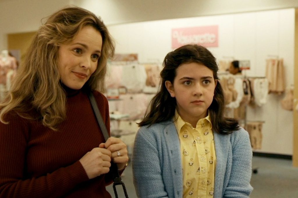 After a gleeful summer at Camp Minnewaska in Vermont, Margaret Simon (Abby Ryder Fortson) returns home to New York City. Yet her wonderfully brash, beloved bubbe, Sylvia (Kathy Bates, of course), breaks the bad news to her: her parents, Barbara (Rachel McAdams) and Herb (Benny Safdie), are moving the family to New Jersey. At 11-almost-12-years old, Margaret is already at a tough age, and starting a new school and finding new friends is the literal worst. However, her neighbor, reigning queen bee Nancy (Elle Graham), chooses Margaret for her exclusive group of four friends, who are obsessed with boys, bras, and their periods.