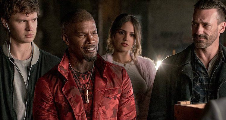 Still, if the use of music is a gimmick, it’s a remarkably well-executed one, successfully transforming the familiar material into something buoyant and new. Baby has good reasons, both physical and psychological, for always being plugged into his iPod. He’s aware and unconcerned that it makes his underworld colleagues think he’s being aloof. An orphan, Baby was raised by an old deaf man, Joseph (CJ Jones), with whom he communicates silently. He fell into the criminal lifestyle accidentally and doesn’t have the stomach for it. He’s strictly the driver, not a gunman, and he’s shocked at how casually the gunmen he works with — including a cackling Bonnie-and-Clyde couple, Buddy (Jon Hamm) and Darling (Eiza Gonzalez), and a flat-out psycho named Bats (Jamie Foxx) — perpetrate violence. (It is suggested that these and the other robbers under Doc’s thumb owe him service because of their cocaine habits, which Doc discreetly calls “nasal problems.”)