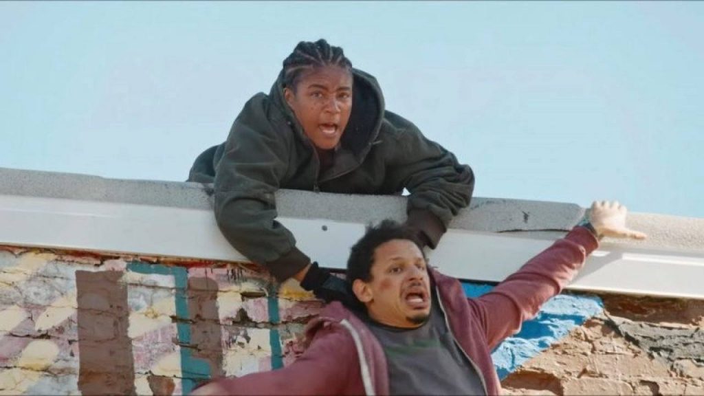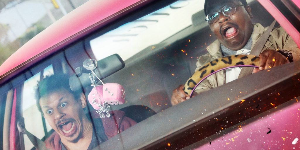 The plot goes like this: Florida-based deadbeat Chris (Eric Andre) is immediately smitten when he sees his high school crush Maria (Michaela Conlin) at his job. But she’s only visiting; she lets him know she lives in New York, where she runs an art gallery. Sprung to the point where he’s damn-near stalkery, Chris convinces his pal Bud (Lil Rel Howery) to take a road trip with him so he can express his love to her. (And, yes, you get to hear the damn “Maria” song from West Side Story all through this thing.) They take off in a car that belongs to Bud’s bullying, incarcerated sister Trina (a corn-rowed, thugged-out Tiffany Haddish), who — unbeknownst to them — just sprang out of jail and is looking for her ride.