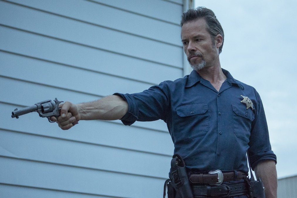 The movie opens with what’s meant to be a character-defining prologue for Pearce’s Jim Dillon, who’s working as a Texas Ranger when he accidentally shoots his partner during a stand-off with a suspect. Emotionally tortured over his error, Dillon transfers to the small town of Horse Cave, where he works as the local marshal (yes, he’s Marshal Dillon) and refuses to ever carry a gun. When a couple of mean-looking bikers roll into town and start a fight at the local diner, Dillon suspects that something more dangerous is afoot, and he turns out to be correct, as those two are merely a diversion, covering for a whole motorcycle gang that’s come to rob the local bank.