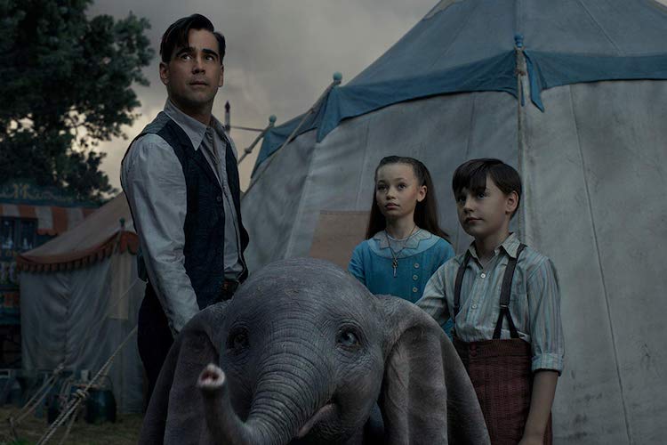 Directed by a somewhat toned-down Tim Burton from a screenplay by Ehren Kruger (writer of most of the Transformers movies), this version aims for quasi-realism: The animals don’t talk or (for the most part) do other things that animals cannot do. So instead of a wise-guy mouse helping the floppy-eared baby elephant become a star of the circus, that function is performed by an emotionless girl named Milly (Nico Parker) and her little brother Joe (Finley Hobbins), who travel with the circus because their father, Holt (Colin Farrell), works for it.