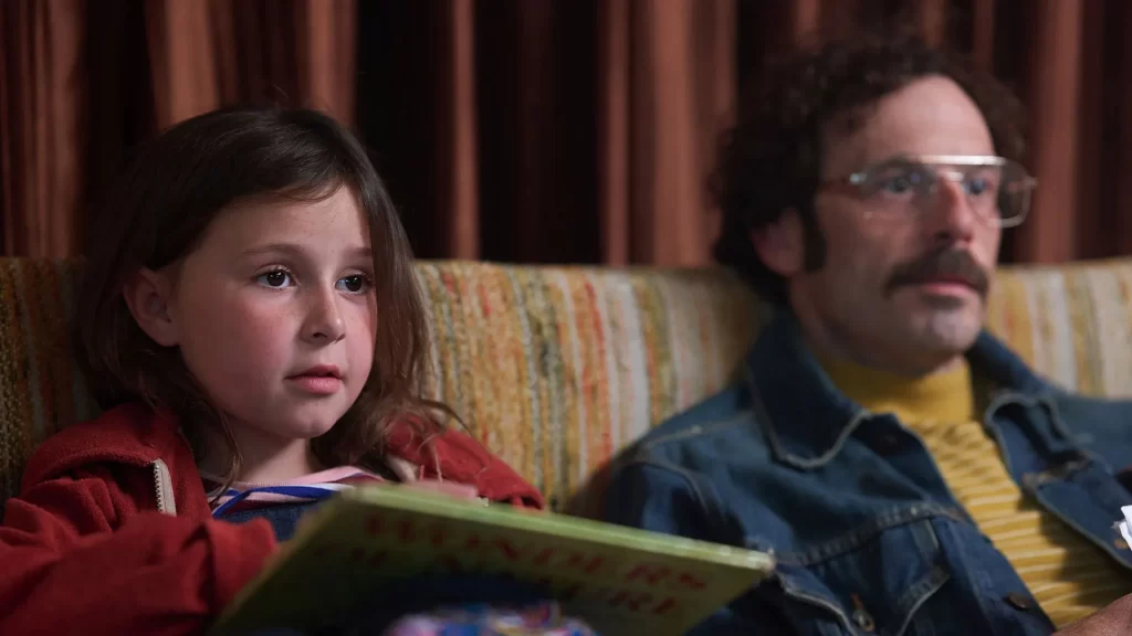 Andrew Durham’s Fairyland opens, according to the on-screen text, in “The Midwest, 1974” – a perfect touch, a reminder of the kind of non-specificity with which those who lived much of their lives on the coasts regard everything that’s between them. (Full disclosure: I was born in “The Midwest,” in 1975.) The inciting event is a late night phone call, the kind of harsh, shrill ring that only comes bearing one kind of news. “Was my wife in the car?” asks Steve (Scoot McNairy, sporting a truly magnificent beard), and she was; her survivors include Steve, their daughter Alysia, and her mother (Geena Davis), who’s the kind of Midwestern matriarch who says, after the funeral, “I’m sorry we didn’t include the poem that you wrote, Steven. We didn’t want anything too personal .” Steve shrugs, and he and Alysia pack up the VW bug and head out west. The opening credits needle-drop is majestic: Blues Image’s “Ride Captain Ride,” encouraging the father and daughter, riding to the water’s edge in their mystery ship.