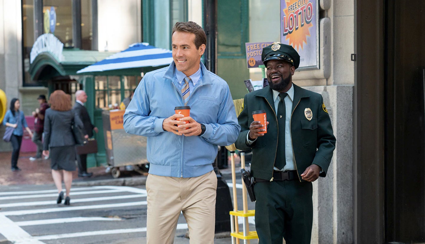 Reynolds is Guy, an Emmet Brickowski-type who doesn’t realize he’s a non-playable character (NPC) in an open-world video game called Free City (think a mashup of Fortnite and Grand Theft Auto). Guy’s typical day includes getting the same cup of coffee on his way to work at the bank and chatting with his best friend Buddy (Lil Rel Howery), a security guard, during daily armed hold-ups. Those robberies come courtesy of what Guy terms “sunglasses people,” Free City players whose presence is designated by their snazzy shades.