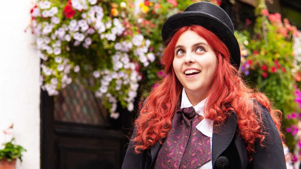 Johanna reinvents herself as bon vivant Dolly Wilde, trading in her brown hair for flaming red curls, fresh face for cat-eye flicks, and standard teen girl wardrobe for outlandish costumes that cause her beloved brother Krissi (Laurie Kynaston) to liken her to the Child Catcher. Her enthusiasm is infectious, but Johanna learns early on from her critic — and critical — colleagues that nastiness sells subscriptions more than adoration, and her biting wit soon makes her a favorite for her tear-downs of everyone who’s anyone on the British rock scene.