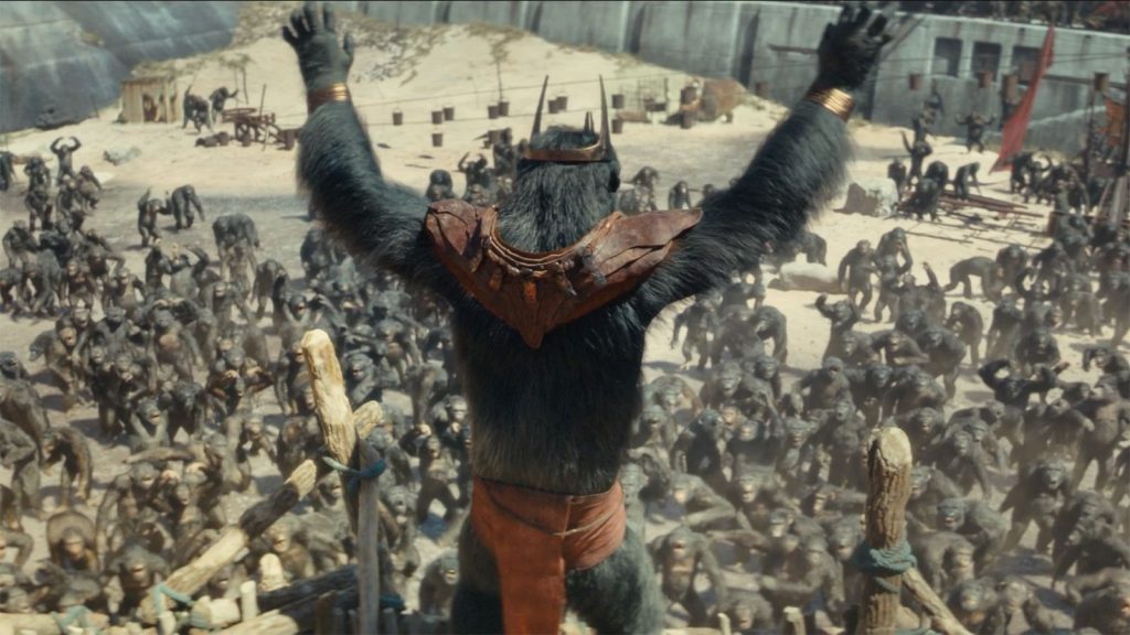 Kingdom also feels longer, sagging a bit in its second half and whenever Raka isn’t on screen. It is the longest offering yet in the franchise, with the running times creeping higher with each movie in the 21st-century reboot. There isn’t a direct correlation between running time and quality; the first is the shortest and can’t match its successors. Meanwhile, Kingdom is only a little longer empirically than the second and third, but there are points where it crawls forward, rather than leaps with the energy of one of these apes.