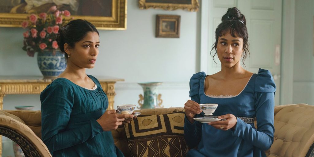 A night at the opera upends the life of Julia Thistlewaite (Zawe Ashton), but just not in the way she intended. Julia attends the see-and-be-seen event with the season’s most eligible bachelor, Mr. Jeremy Malcolm (Ṣọpẹ́ Dìrísù), but he doesn’t want a second date after their lackluster conversation. “She flutters her lashes far too much,” complains Mr. Malcolm, sounding a bit like Jerry Seinfeld in his pickiness. He has a list of everything he desires in a wife, and Julia learns that she doesn’t meet his qualifications. She enlists the help of her dear friend, Selina Dalton (Freida Pinto), to pretend to be his ideal woman, with plans of breaking his heart once he falls prey to their schemes. Perhaps unsurprisingly, Selina begins to develop real feelings, complicating her frivolous friend’s plot. Meanwhile, the handsome Captain Henry Ossory (Theo James) shows up to add to the drama and potential pairings.