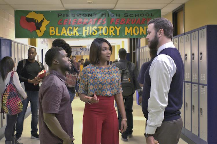 The real conflict is that Teddy has dyslexia and a host of other learning disabilities that were never diagnosed, hence his frustration and eventual dropping out when he was a teen. It’s his GED instructor, Carrie (Tiffany Haddish), who figures this out (though we spotted it in the first scene of the movie, when Teddy took a test and the words and numbers started jumping around the page), and her solution is to use “alternative teaching methods” to help Teddy learn, e.g., kickboxing. Does that make sense? No, but it lets Kevin Hart and Tiffany Haddish horse around on gym mats while the GED students cheer them on.