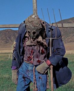 Arriving late in the slasher cycle, Scarecrows was shot in 1985, received a limited theatrical release in 1988, and almost immediately went to home video, where it joined Dark Night of the Scarecrow. Whatever influence they had on the genre was slow to manifest itself, but they were eventually joined by 1992’s Dark Harvest (a.k.a. Bloody Harvest), 1995’s Night of the Scarecrow, and 1996’s Psycho Scarecrow, with plenty more to come in the decades that followed. 1996 also brought forth the “Scarecrow Walks at Midnight” episode of the Goosebumps television show, which features some of the creepiest walking scarecrows ever to grace the screen, big or small. It seems likely that Harold will give them a run for their money, though.