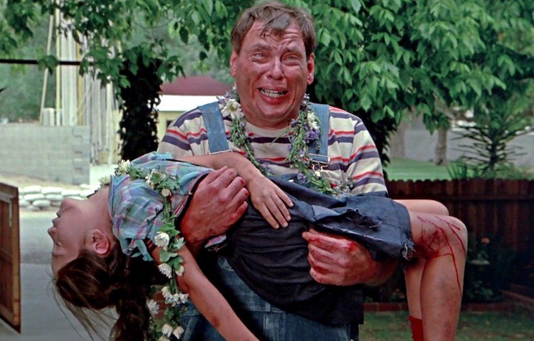 Broadcast in 1981, Dark Night of the Scarecrow opens with a grown man picking flowers with a little girl in a field, evoking the scene of Boris Karloff’s childlike Monster playing with the girl in Frankenstein. In this case, the man is the mentally challenged Bubba Ritter (Larry Drake, laying the groundwork for his Emmy-winning turn as Benny on L.A. Law) and the girl is Marylee Williams (Tonya Crowe), who apparently knows better than to play with him near a pond. The proverbial gentle giant, Bubba is perfectly harmless, but is seen as a menace by vindictive mailman Otis Hazelrigg (Charles Durning), who’s been gunning for him for years. “He’s a blight,” Otis says to one of his cohorts, and they get their chance to remove him from the community when Marylee is attacked by a vicious dog while walking home with Bubba and rumors spread that a) she died, and b) he killed her. That gives Otis all the excuse he needs to turn vigilante and hunt Bubba down with three of his hick buddies, one of whom brings his dogs along so they won’t lose him the way they have in the past.