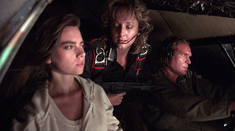 In many ways, Cabrera’s creature effects are the whole show; the story of Scarecrows, which Wesley fleshed out with screenwriter Richard Jefferies, is fairly boilerplate. It concerns a four-man, one-woman paramilitary unit that heists a $3.5 million payroll from a military base and takes a cargo pilot and his teenage daughter hostage. When one of the rogue operatives bails out of the plane with the cash, his peeved partners circle around and parachute down to intercept him, making them easy pickings for the sinister scarecrows guarding an abandoned farmhouse near where they land.