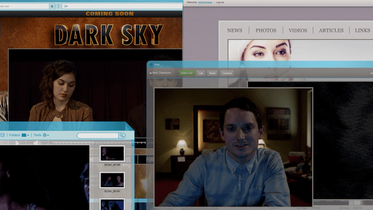 Early on in Dark Web, the main character opens the Skype app and walks away from his computer for a moment. The Skype page pops up, obscuring a Spotify playlist giving the film an in-universe score, a Facebook chat with the character’s girlfriend, and, underneath it all on the left side of the screen, a sliver of a video feed from the character’s webcam.