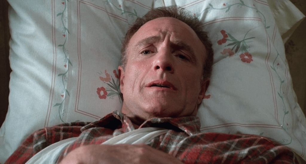 In horror, your story is only as good as its baddie, and Annie Wilkes is a first-ballot Hall of Fame-level sociopath. Kathy Bates nabbed an Oscar that year (a year in which Julia Roberts was also nominated for glo-up gold standard Pretty Woman) for good reason; her face changes with eerie precision. Nineties cinema staple Barry Sonnenfield does some of the heavy lifting with uncanny lighting and stark cinematography that keeps half of her face hidden in shadow during the aforementioned “dirty bird” scene, but the daylight sequences showcase Bates’ phenomenal physicality. With all of the grotesquery of biddy horror goddess Bette Davis in Whatever Happened To Baby Jane?, Bates commands the entire frame with a piercing yet impenetrable stare that could bring salvation or suffering, depending on the weather that day. It’s worth noting that the same year, Dr. Jack Kevorkian committed his first public suicide assistance on Janet Adkins, and the following year, Anthony Hopkins would grab a golden statuette for another sociopathic horror role in Jonathan Demme’s The Silence of The Lambs. Killer medical personnel were all the rage.