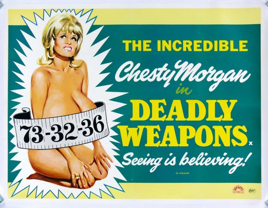 Meyer’s films drew feminist interest because they were campy and winking, and often in on the joke of the simultaneous surrealism and banality of men’s erotic longings. There are certainly times when Wishman also seems to have her cake and eat it too. Both Deadly Weapons and Double Agent 73 (1974) starred the actress Liliana Wilczkowska, made famous under the name Chesty Morgan, thanks to her 73-inch bust. It’s hard to see these films as anything but provocative parodies of a male obsession with breasts. If breasts are what you want, you’re going to get your money’s worth: Morgan’s assets are trussed up in lacy and bejeweled bras, pushed up and out of silken nighties. They are washed and massaged and soaped at great length.
