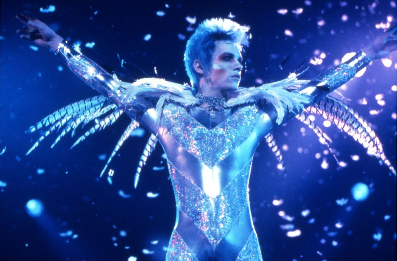 When Velvet Goldmine was released in 1998, its notoriety came in part from its resemblance to actual persons and events. Haynes had initially conceived of the film as a David Bowie biopic, but when the groundbreaking figure withheld the rights to his catalog, Haynes edited his screenplay to remove references to Bowie, Iggy Pop, and other real-life figures. Eagle-eyed glam fans may recognize some peripheral characters who have similar analogues on the glam scene; look for Donna Matthews from Elastica as a stand-in for Suzi Quatro.