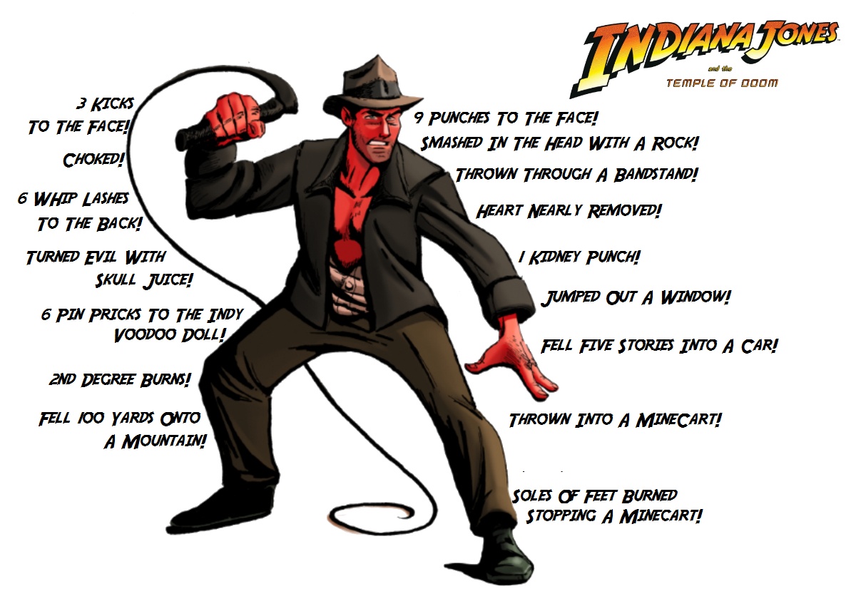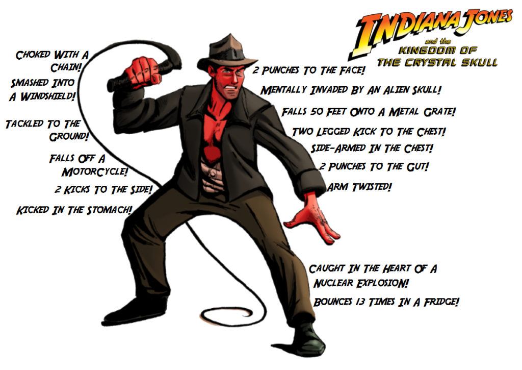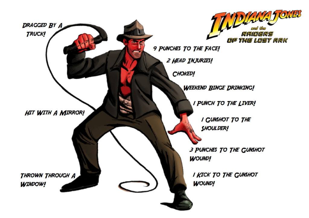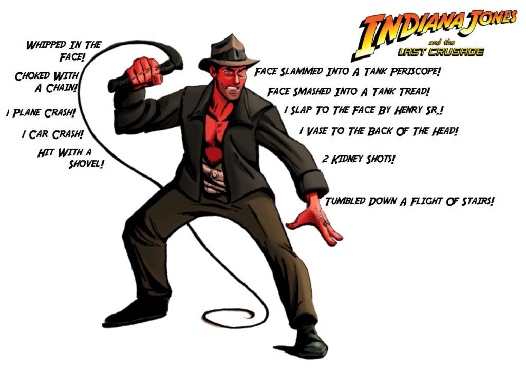 Whether Nazis, Communists, or Thuggees, Indiana Jones fights them all, and he gets his share of bruises and beatings. But just how much damage does he take in the course of his adventures? How many concussions has the great archeologist suffered while fighting the most evil of evil jerks around? We kept track. Here’s a handy movie-by-movie summary.