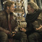 Oh yeah, the gold people. And they get accused of stealing, so now they’re chasing them all across the universe. The blue girl is in there, and she’s mad. She’s got a big axe to grind with the sister, because they each think the other one had it worse with the dad — Thanos. Peter’s dad is Kurt Russell, and then he goes to live with them for a while. Things went well at first but then they go very bad, because it turns out his dad is wacko. He’s got a whole well of skeletons. He’s like a god, he had come down to earth to meet the mother, and that’s how he ended up with these powers, because he wasn’t supposed to be down there fooling around with the mother. Anyway, in the end, he ends up in a big hole with Rocket. They have to get rescued, and he has to defeat the father. And all his buddies help. Oh, and his fake father who actually did love him dies. That was very sad, actually. I did cry.