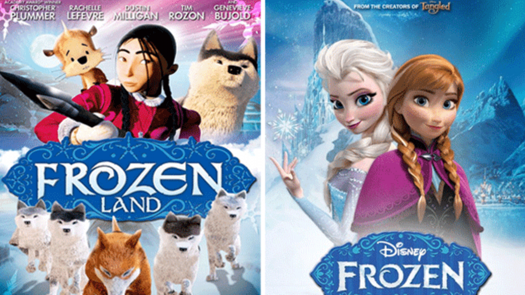 Disney had a bit more luck in recent years, when they sued Canadian animation studio Phase 4 in 2013 over their marketing materials for a film called The Legend of Sarila, which they hastily renamed Frozen Land. They were spectacularly unsubtle about their artistic influences: they essentially just used the Frozen title design and slapped the word “land” underneath it. Phase 4 was ordered by the courts to make every effort to change their promotional artwork and pay Disney $100,000 in damages.