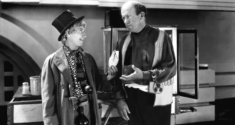 When he’s messing with random people, Chico has a devilish smile and a twinkle in his eye. He pushes his politeness to the point that you can’t miss the facetiousness of it. The rebellious teen that dwells in us all is still in him, but he’s found a way to better use it. In Duck Soup, Chico, selling roasted nuts from a pushcart, turns the simple phrase “peanuts to you” into a hard-to-prove but clearly intentional put-down by placing the emphasis on “nuts to you.” It is a beautiful, simple moment that comes with getting older and not giving a damn.