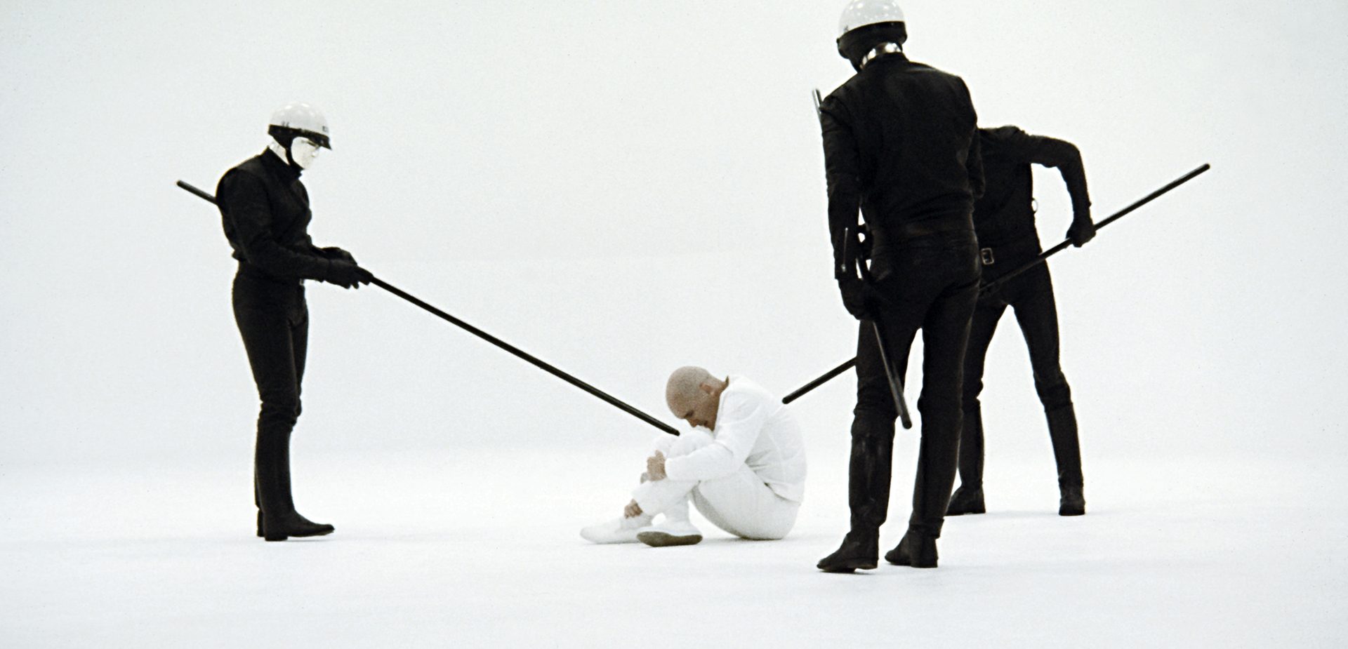 Intriguingly, the films’ respective visual settings almost reverse their own narrative placement. THX is assumed to take place in a future time period, the only hint at such being the usage of a clip of a Buck Rogers serial at the beginning. This may be just for tone and contrast, however, showing the distinction between the hopeful futurism of the ‘30s and the new pessimism of the ‘70s. Lucas really intends THX to take place in a nebulous time period, thereby having the film be more of a commentary on the present. In the world of the film, humanity has been reduced to a purely functional organism—everyone is made to look as exactly the same as possible with shaved heads and uniform clothing, each individual has an assigned designation code as a name and a vocation to go with it, and any coupling/co-habitation is decided by algorithm. Art director Michael Haller at first glance appears to have constructed a variety of large, dehumanizing spaces for the film, but the truth is that most of the sets were pre-existing locations in San Francisco and the surrounding area, with only a few all-white rooms being “constructed.”